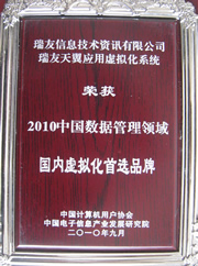 省著名商標(biāo)獎(jiǎng)牌 應(yīng)用虛擬化最佳解決方案獎(jiǎng)
