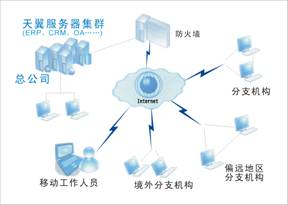 瑞友公司了解到萬(wàn)網(wǎng)的實(shí)際情況,建議萬(wàn)網(wǎng)采用瑞友天翼應(yīng)用虛擬化系統(tǒng)作為中間件,加載到VPN中同步使用。像財(cái)務(wù)軟件、oa、等應(yīng)用軟件都集中安裝到天翼服務(wù)器上,各客戶端無(wú)零安裝,所有的升級(jí)、維護(hù)、培訓(xùn)等也都在服務(wù)器端完成。小型分公司或辦事處可以不用再單獨(dú)安裝財(cái)務(wù)軟件,直接在總部的服務(wù)器上完成財(cái)務(wù)工作;對(duì)于偏遠(yuǎn)地區(qū),直接通過(guò)ADSL拔號(hào)就可以登陸到總部的服務(wù)器上;而且極大的為企業(yè)降低了信息化投入費(fèi)用,對(duì)各方面的資源進(jìn)行了有效整合。而且,經(jīng)過(guò)授權(quán)的企業(yè)管理者及員工在任何時(shí)間、任何區(qū)域通過(guò)任何網(wǎng)絡(luò)方式都可安全的訪問(wèn)公司總部的服務(wù)器進(jìn)行實(shí)時(shí)辦公,實(shí)現(xiàn)了數(shù)據(jù)的實(shí)時(shí)共享及傳遞,從而顯著提升了整個(gè)公司的運(yùn)營(yíng)效率,增強(qiáng)了公司的整體競(jìng)爭(zhēng)力。